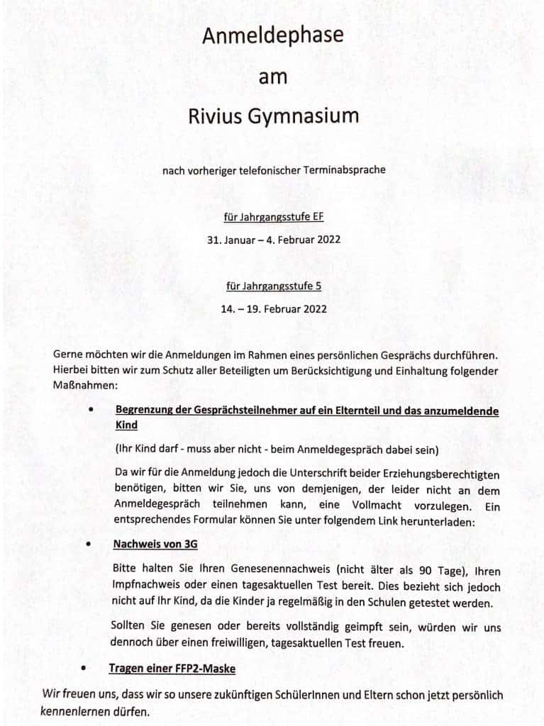 Anmeldephase am Rivius Gymnasium Hier finden Sie einen entsprechenden Vordruck zur Anmeldevollmacht. 26.01.2022|Allgemein|