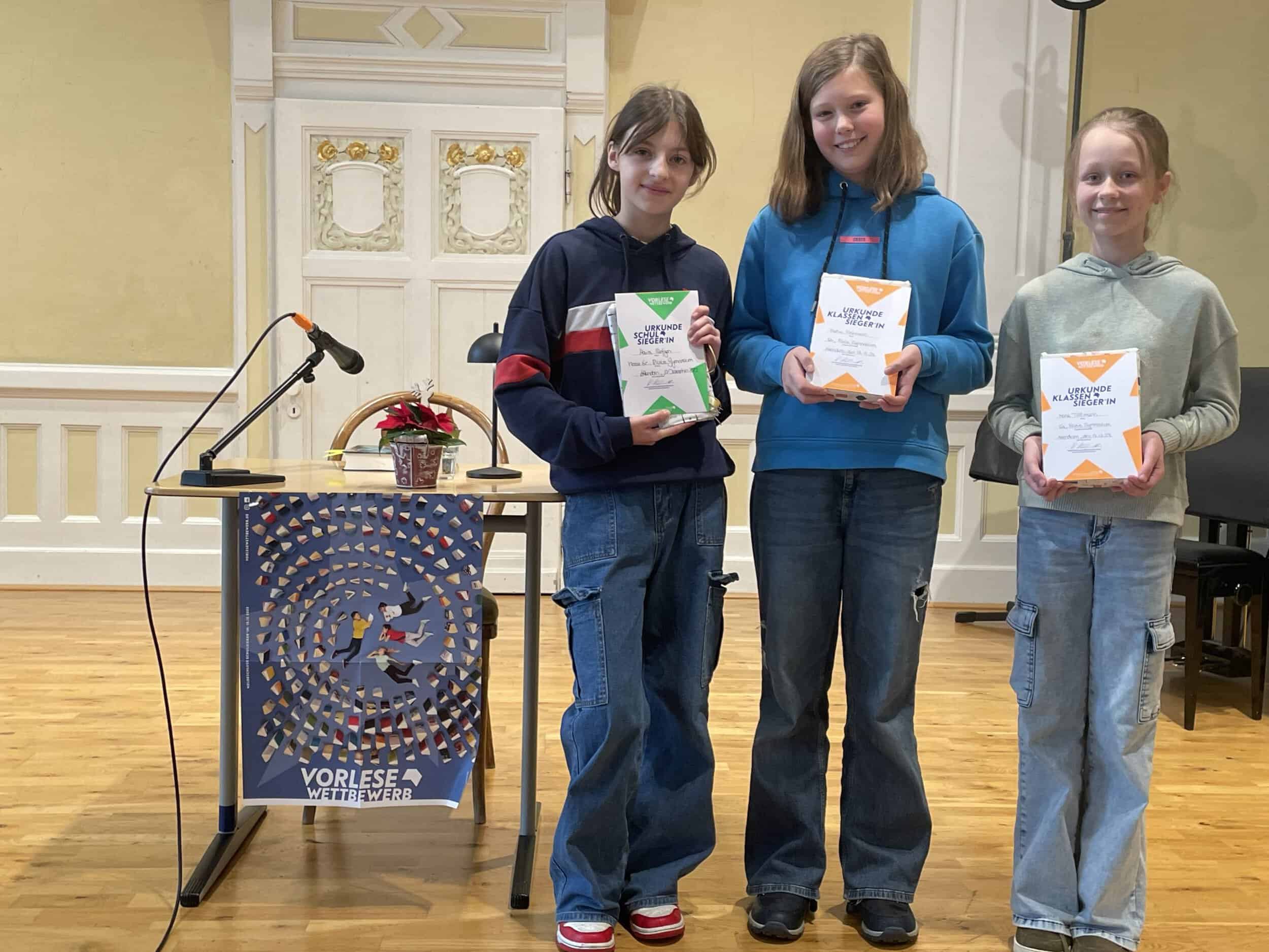 Alle drei Klassensiegerinnen freuten sich besonders über die Buchgeschenke der Buchhandlung Frey, die den Wettbewerb seit vielen Jahren unterstützt.